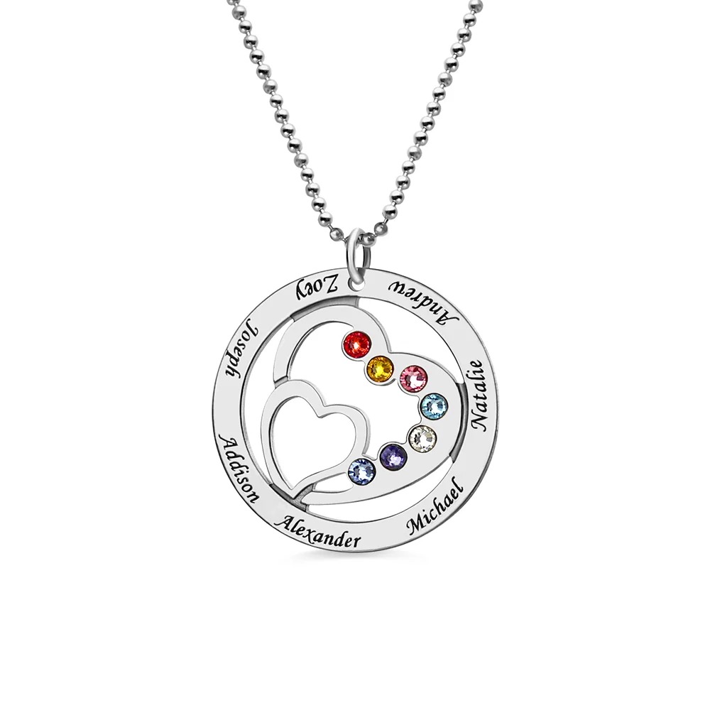 Mamas Geschenk - Herz im Herz Geburtsstein Halskette mit Kindernamen. Jede Mutter hält immer ihre Kinder im Herz, jedes Kind ist ein geschätztes Familienmitglied. Jetzt haben wir speziell für die liebende Mutter einen personalisierten Anhänger kreiert als Ausdruck der Liebe für die Familie. In diese schöne Herz-Halskette können bis zu 7 Kindernamen eingraviert werden, außerdem können bis zu 7 Geburtssteine dazu gefertigt werden! Trage Sie Ihre Kinder immer bei sich mit diesem herrlichen Schmuckstück.